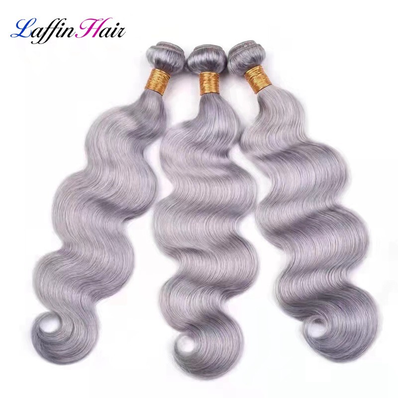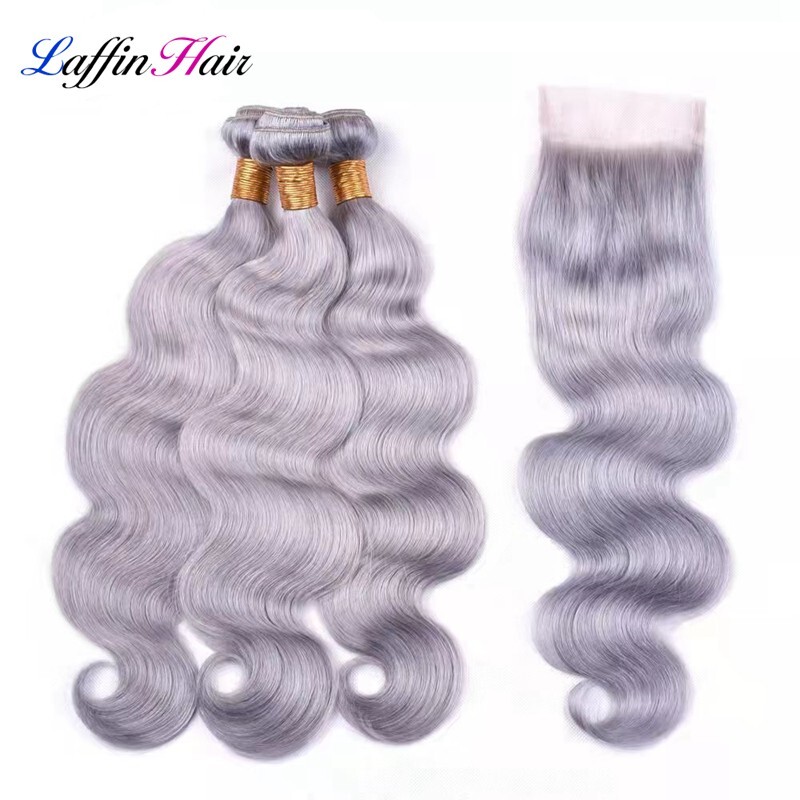 Product Name: Body Wave Grey Hair Weave Bundles With Closure Remy Human Hair