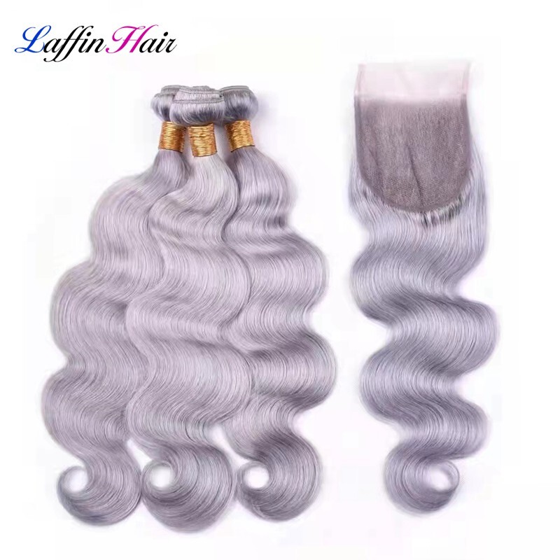 Body Wave Grey Hair Weave Bundles With Closure Remy Human Hair LFBC-30