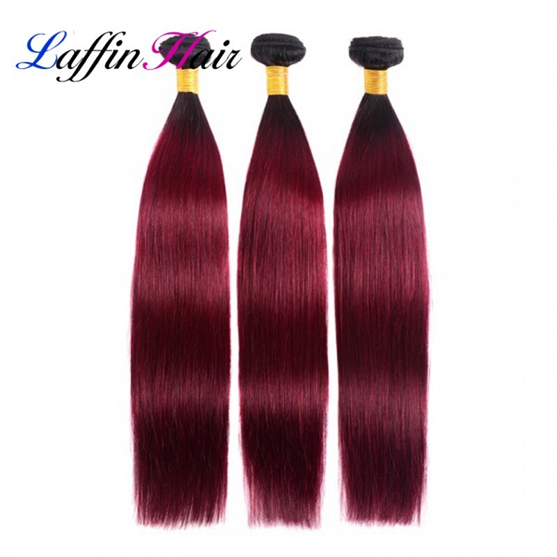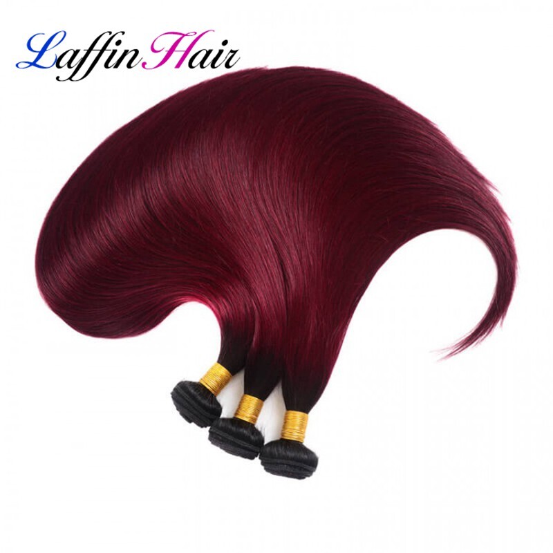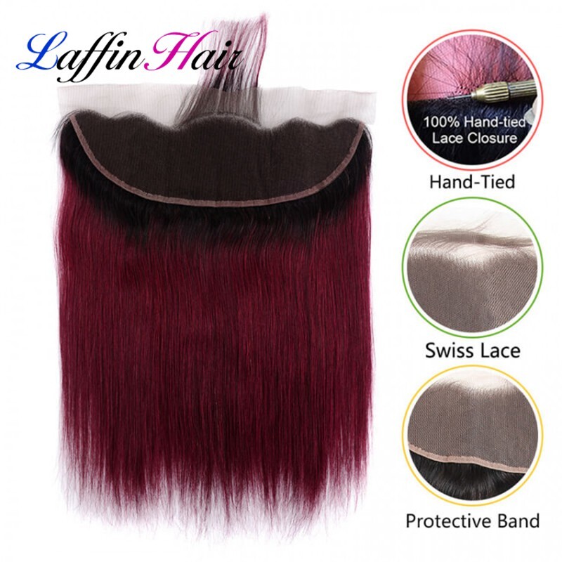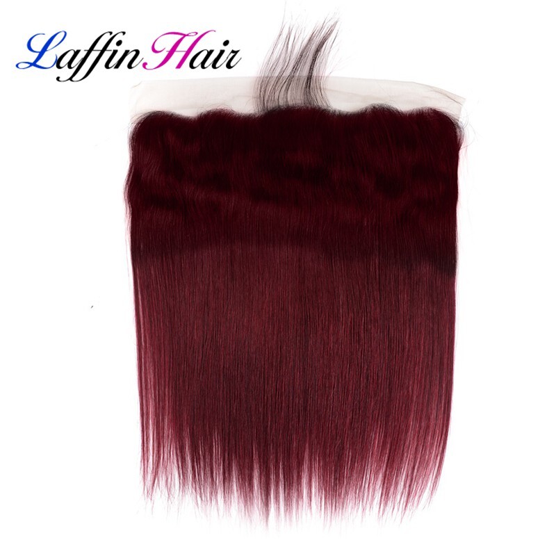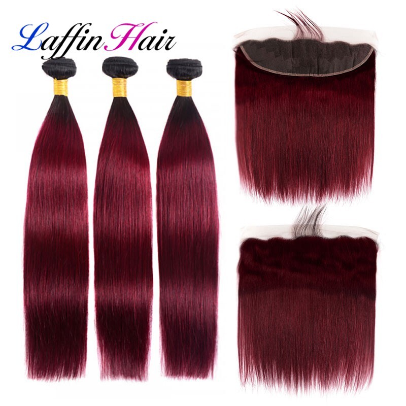 Straight T1B/Burgundy Hair Weave Bundles With Frontal Remy Human Hair LFBF-32