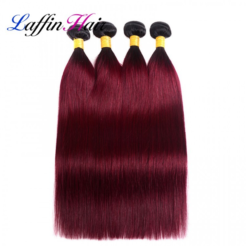 Product Name: Straight T1B/Burgundy Hair Weave Bundles With Frontal Remy Human Hair